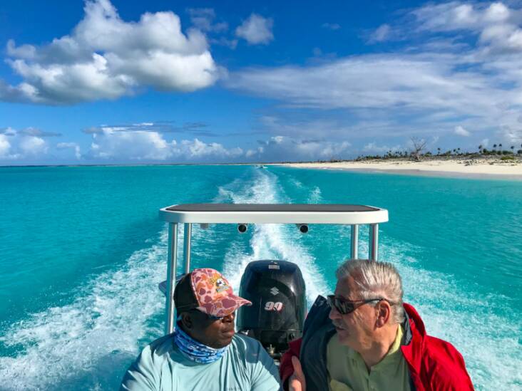 Guests stay in the Casuarina Beachfront Villas, nestled on a beautiful beach, where they can watch the sunset each evening. When conditions are right, guests can be picked up in the morning by their guide right on the beach out front! Otherwise, the small marina where the guides keep their boats is a short walk from the Villas. Delicious home-cooked meals emphasizing fresh local seafood are taken at Gibson’s Cafe, a short walk from the Villas. This excellent operation combines experienced island guides, excellent equipment, great meals and modern, very comfortable A/C lodging into a proven winner, all at a very reasonable price… especially when one considers how very remote and rarely visited this untouched area of the southern Bahamas really is.